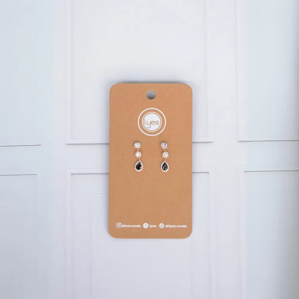ARETES NEGROS CON PEDRERÍA PLATEADA